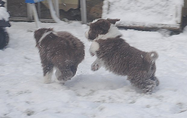 Endlich hatten sie es überstanden und entwickelten sich gut. Zwar waren sie in allem ca. 1 Woche hinterher im Vergleich zu gleichaltrigen Welpen, aber heute sieht man davon nichts mehr. Bei Gustl stellte sich später jedoch heraus, daß er eine Bindegewebsschwäche hat. Die Ärzte gehen von einem angeborenen Problem aus, jedoch nicht erblich bedingt.
