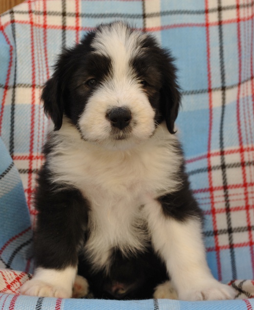 Sie hat traumhaftes Pigment, ganz dunkle Augen und einen schönen breiten Unterkiefer mit korrektem Scherengebiß, eine gute Knochenstärke, und nicht zu langes harsches, pflegeleichtes Fell.