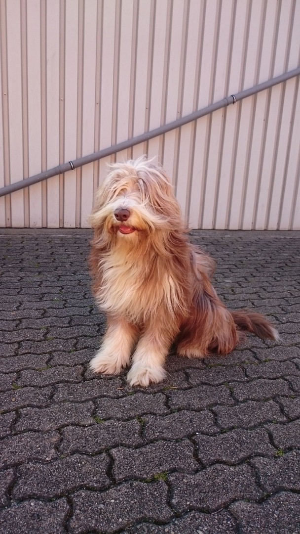 Molly ist eine große kräftoge Hündin, die ihrem Papa "wie aus dem Gesicht geschnitten" ähnelt. Sie ist weder geräuschempfindlich noch ängstlich, allerdings hat sie einen sehr eigenen Kopf.