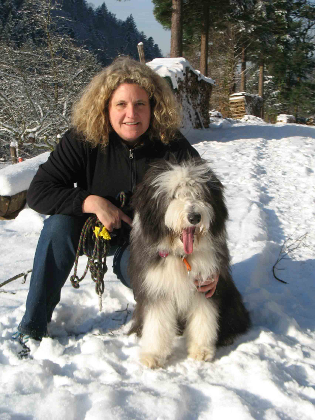 Täuble ist schwarz geboren und kam schon mit schwarzer Nase zur Welt. Von Anfang an zog sie uns in unseren Bann, und mit ihrer vorwitzigen, unerschrockenen und unbekümmerten Art waren wir ihr bald ganz verfallen.