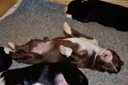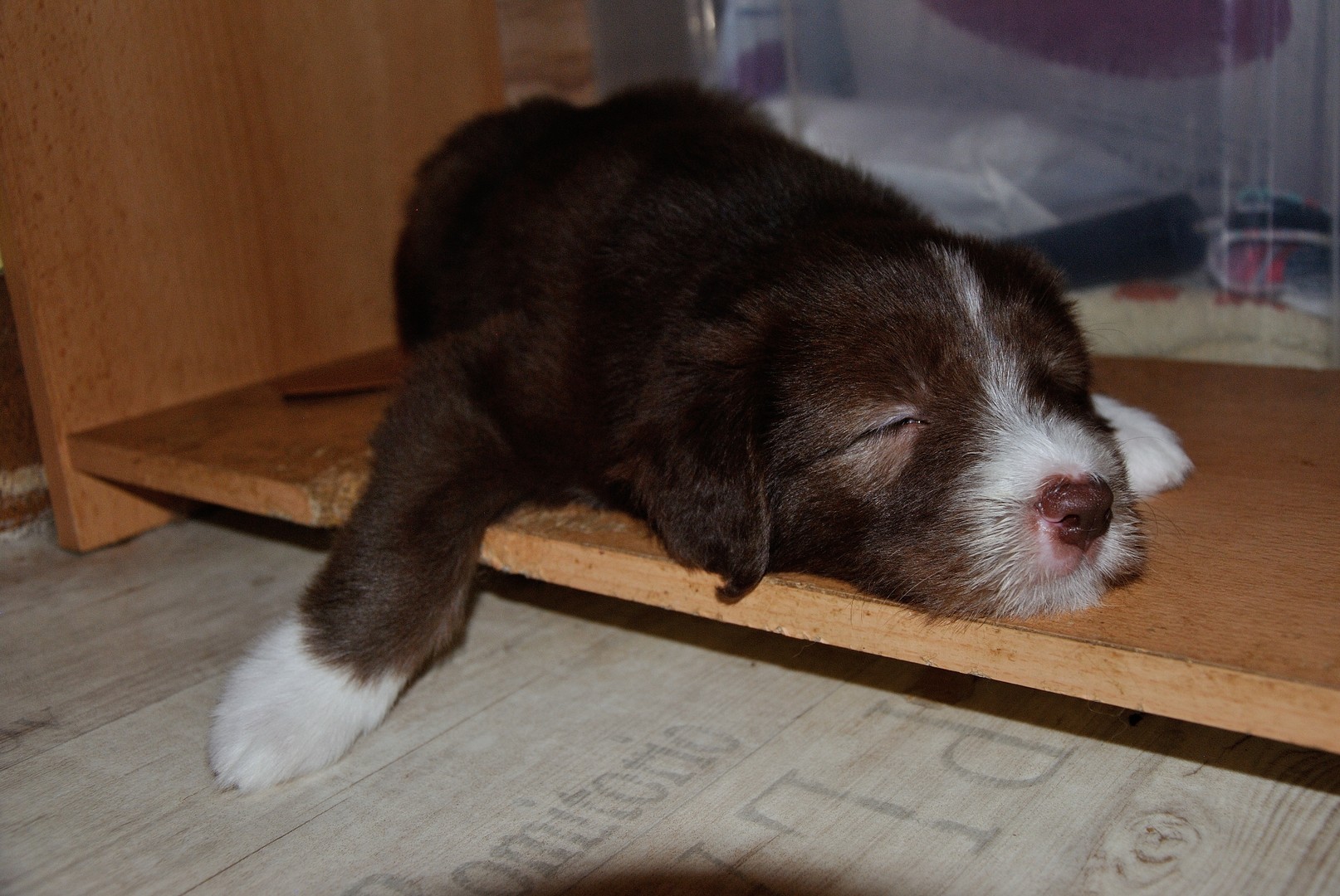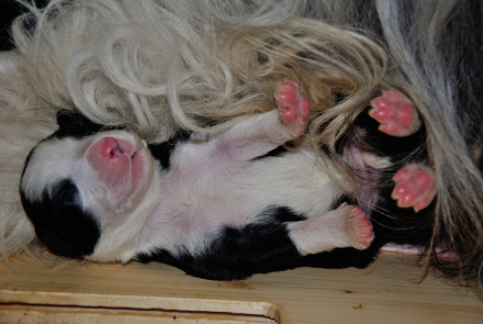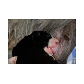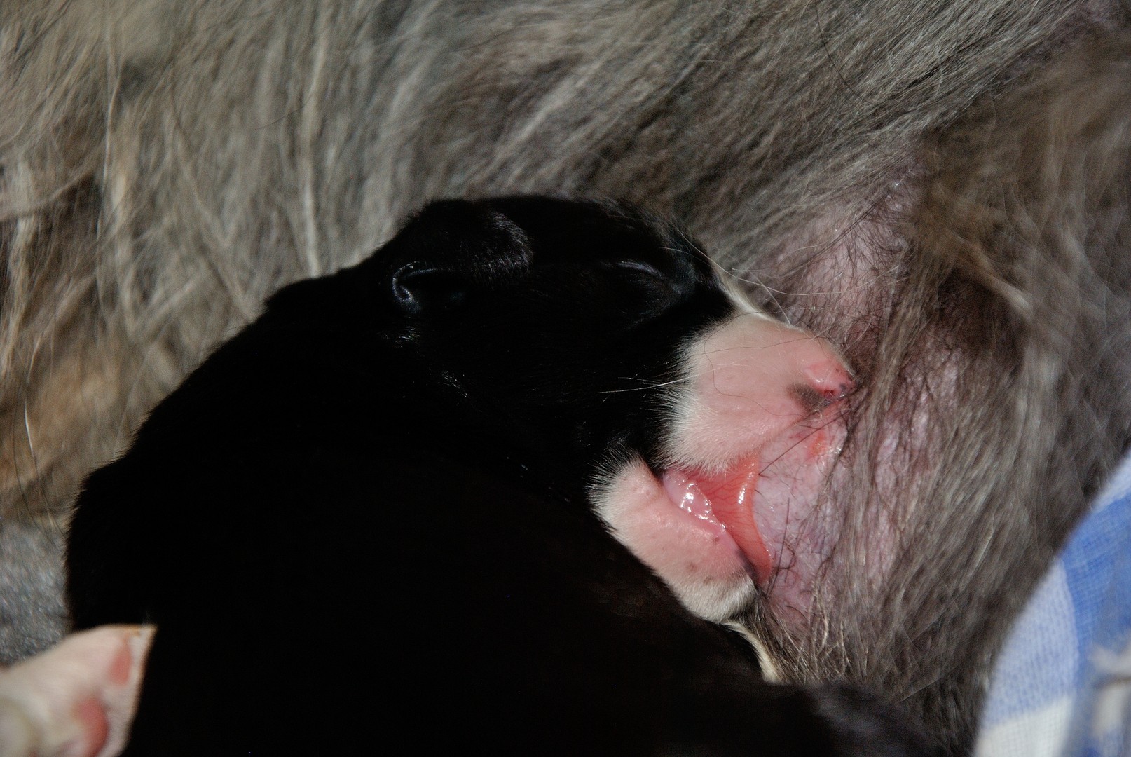 Sie ist die Erstgeborene und brachte uns nicht schlecht zum Staunen: Ich sag ja immer, in jedem Wurf gibt es einen kleinen Schreihals, aber diese kleine Maus kam schon mit Gebrüll zur Welt. Ida sprang erst mal ein Stück weg weil sie sich erschrocken hatte. Plötzlich liegt da ein quietschendes nasses Bündel Etwas. Sie hat sich aber sofort beruhigt als wir ihr das Baby vor die Nase hielten. Sie kümmerte sich sofort um die kleine Entertainerin.